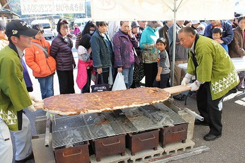 新米まつりのメイン企画では、8升のお米でつくる「ジャンボ五平餅」は14:30より無料でお配りいたします。フィナーレでは100キロのお米を使った投げ餅を盛大に行います。