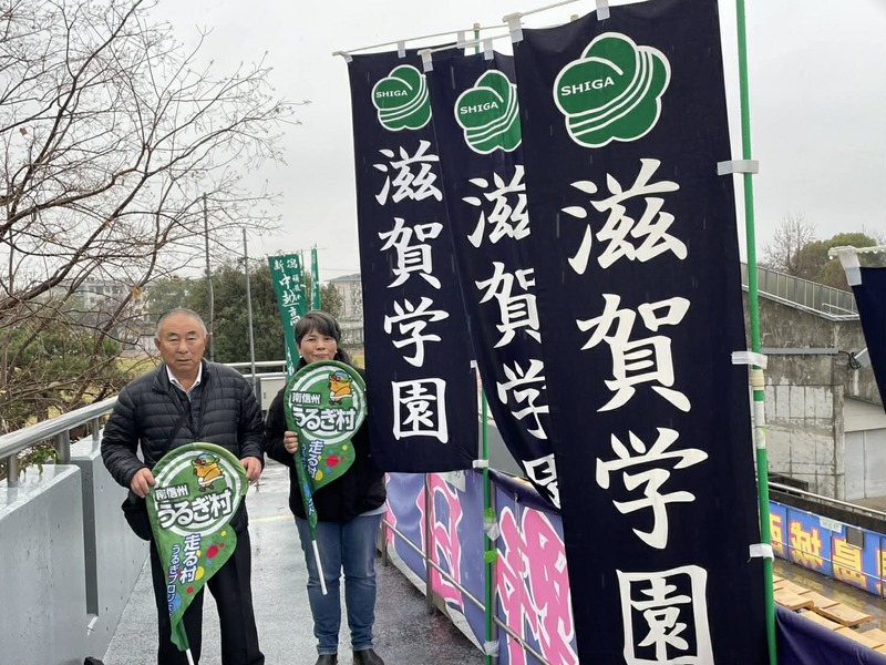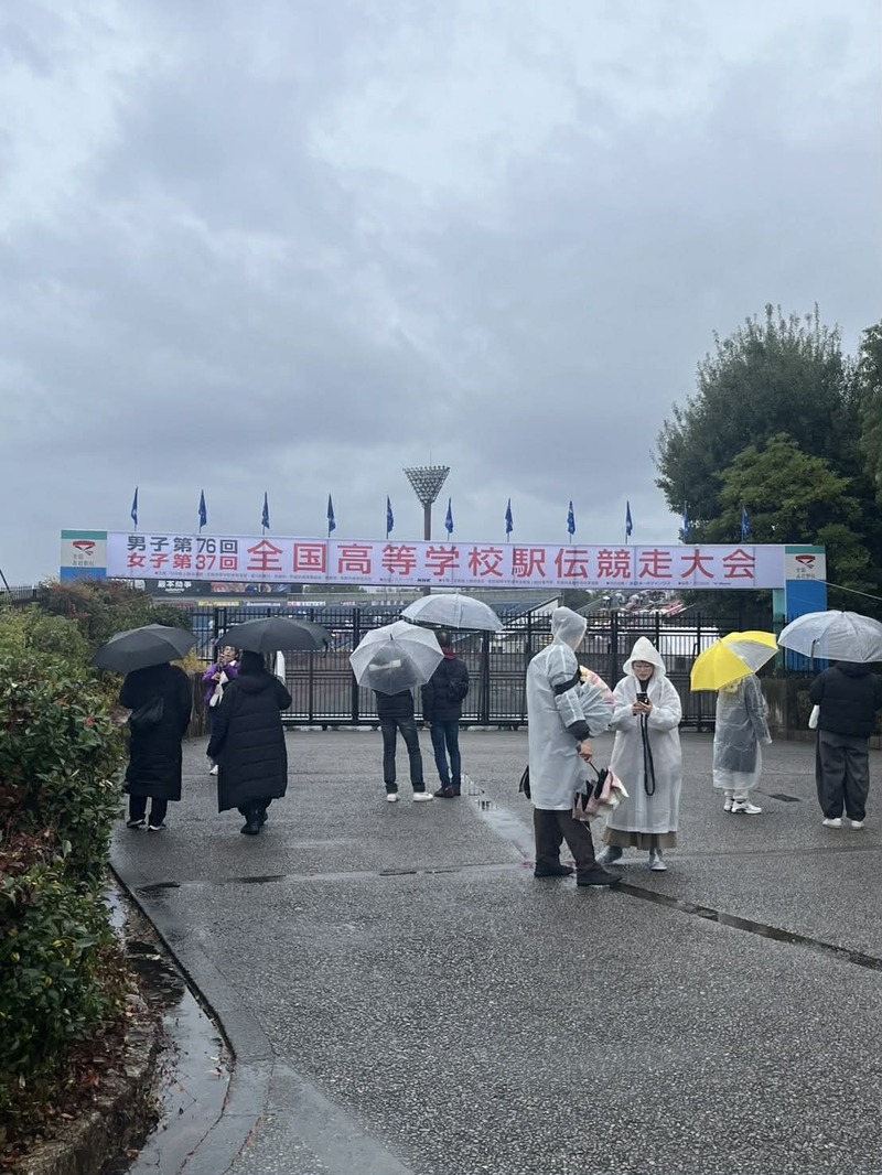 時折激しく雨の降る中、男子もスタートしていきました。滋賀学園の健闘を祈ってスタンドから大声を出して応援しました。もちろん長野県代表の佐久長聖高校、長野日大の応援も忘れません。