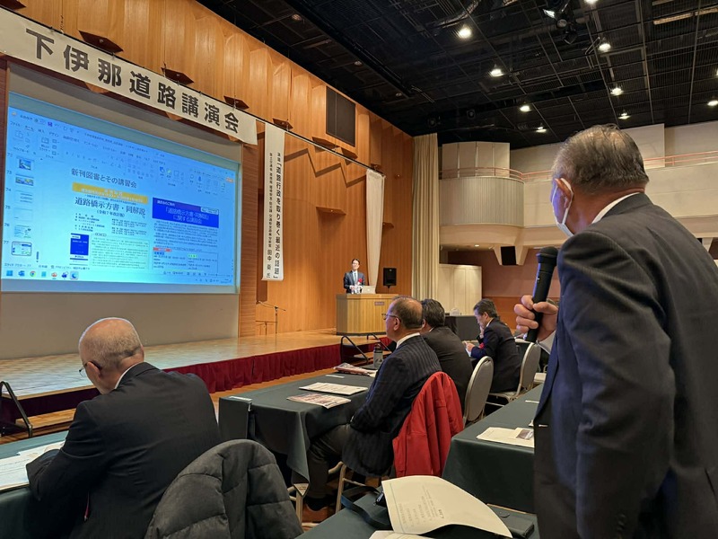 下伊那道路講演会が飯田市で行われ出席しました。国交省道路局交通安全分析官の田中衛氏から道路行政を取り巻く最近の話題について、栗林長野県建設部長からは長野県の道路行政について、五洋建設㈱土木技術専門部長の青木さんから三遠南信道青崩トンネルの工事の苦労話をお聞きしました。