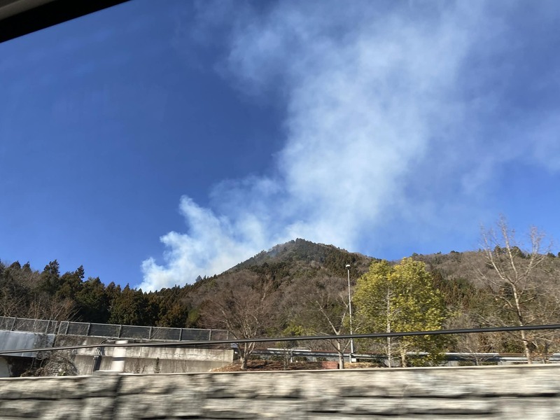 高速バスで帰路につきました。談合坂SAに近づくと山梨県上野原町で発生した山火事の煙が見えます。人家にも近く、早く鎮火してほしいと思いながら通り過ぎました。
