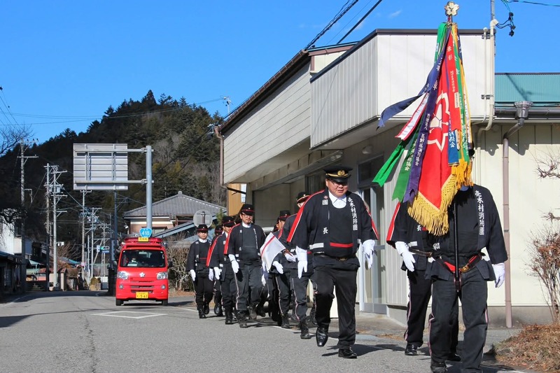 売木村消防団出初式が挙行されました。今年は雪もなく穏やかな気候の中で悦団、分列行進もできました。
