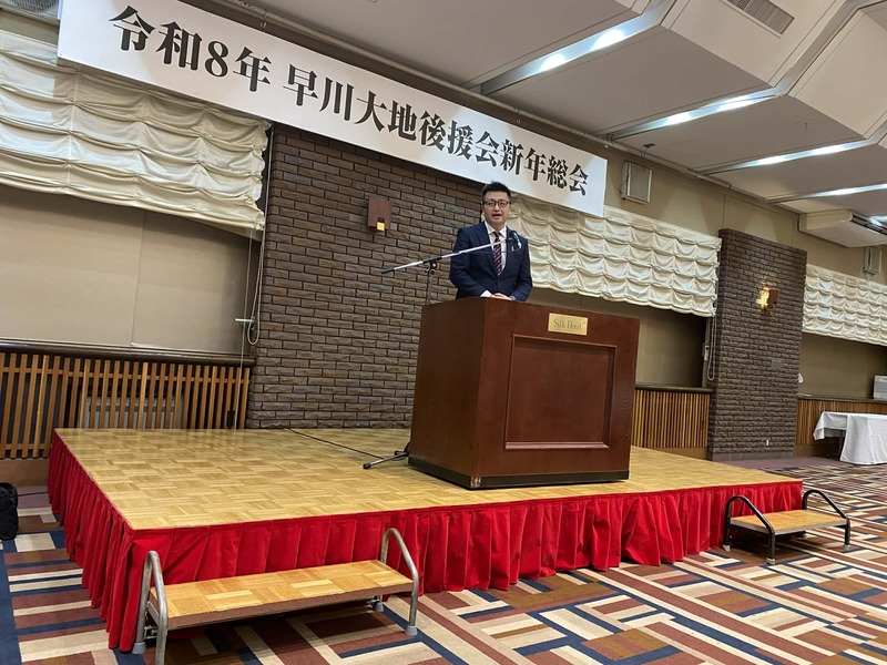 夕方からは下伊那郡町村会、議長会、土木振興会の3団体の新春懇談会も開催されました。衆議院解散が言われる中、地元選出国会議員の先生方もご多忙のところ駆けつけていただき、華を添えていただきました。