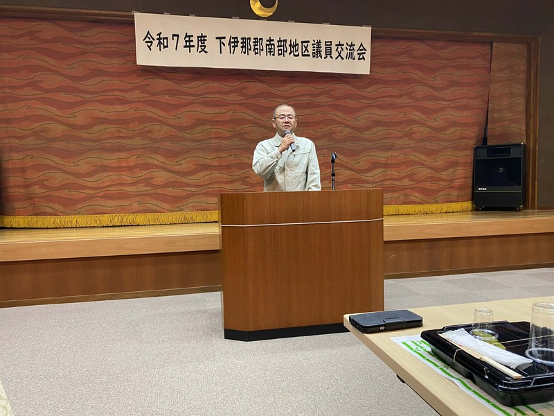 研修会終了後は天龍村福祉センターで南部地区議員の皆さんとの交流会が行われました。地元天龍村の永嶺村長が来賓の挨拶をしました。
