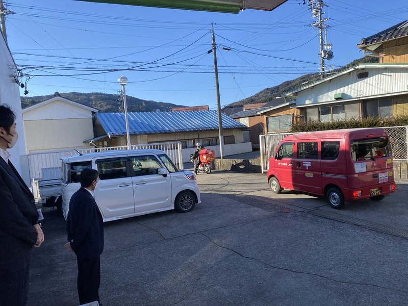 旦開郵便局の年賀状配達出発式に行きました。広い管内に約6,500通の年賀状が配達されます。安全に配達がされますように激励の挨拶をさせていただきました。