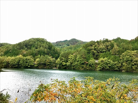 岩倉ダムキャンプ場の入口付近では、広葉樹が綺麗に色付き始めていました。